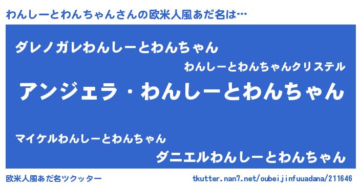 | 意味不明あだ名 | 『住所不定無職わんしーとわんちゃん(84歳)』 |