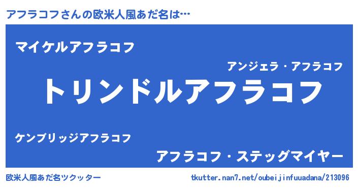 | 女子向けラノベタイトル風あだ名 | 『アフラコフの玉の輿計画!』 |