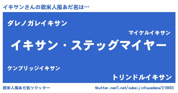 | 男性向けラノベタイトル風あだ名 | 『うちのイキサンが世界を掌握している!』 |
