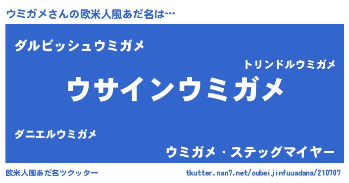 | ヒーロー風カッコイイあだ名 | 『黄金騎士ウミ』『ネオウミガメ』 |