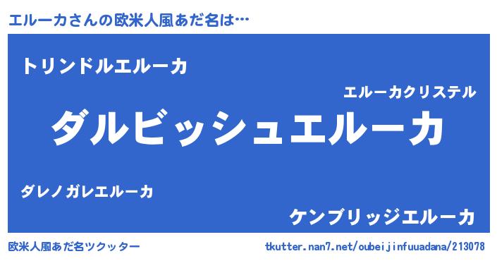 | 男性向けラノベタイトル風あだ名 | 『エルーカという概念が存在しない退屈な世界 』 |