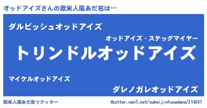 | 男性向けラノベタイトル風あだ名 | 『オッドアイズ~年齢イコール彼女いない歴の魔法使い~』 |