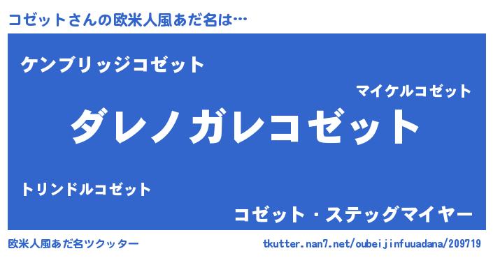 | 意味不明あだ名 | 『住所不定無職コゼット(84歳)』 |