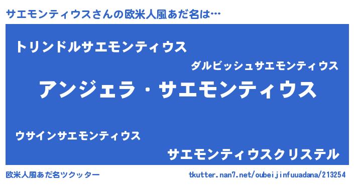 | 男性向けラノベタイトル風あだ名 | 『サエモンティウスに滅ぼされるだけの簡単なお仕事です』 |