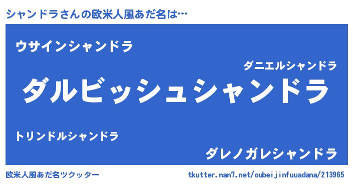 | 男性向けラノベタイトル風あだ名 | 『シャンドラという概念が存在しない退屈な世界 』 |