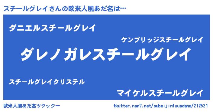 | 意味不明あだ名 | 『住所不定無職スチールグレイ(10歳)』 |