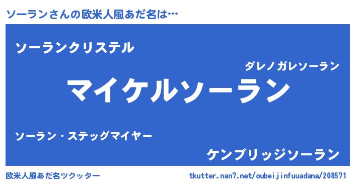| ヒーロー風カッコイイあだ名 | 『スーパーソーラン』『仮面ソーダー』 |
