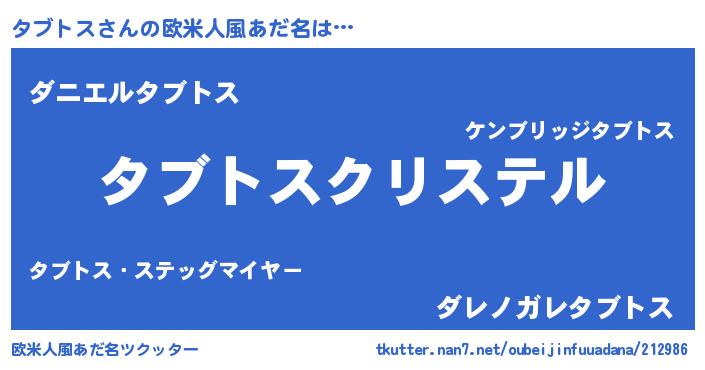 | 女子向けラノベタイトル風あだ名 | 『タブトスの婚約者』『タブトス恋絵巻』 |