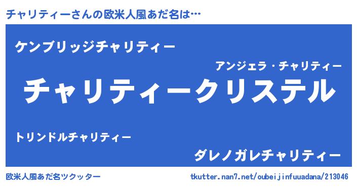 | 意味不明あだ名 | 『チャリティーフォーエバー』 |