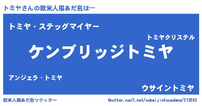 | 男性向けラノベタイトル風あだ名 | 『Re:トミヤから始める異世界生活』 |