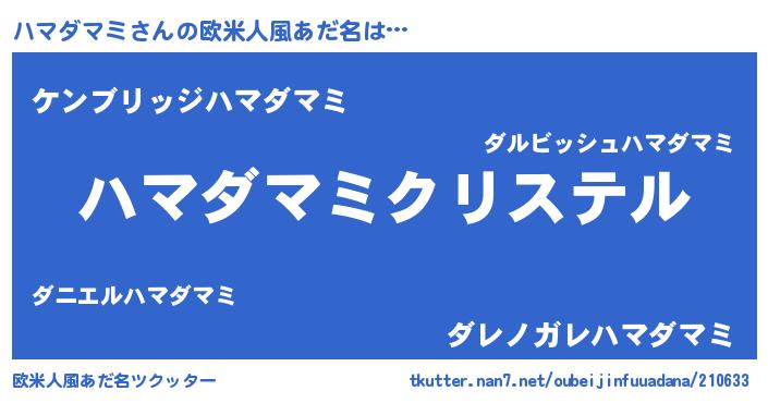 | ポケモン風あだ名 | 『ハマダダネ』『ハマセウス』 |