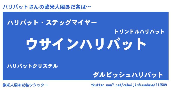 | 女子向けラノベタイトル風あだ名 | 『ハリバット様がみてる』 |