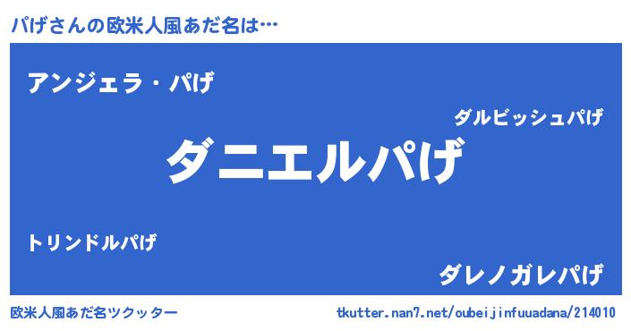 | ヒーロー風カッコイイあだ名 | 『天空の使者パげ』『仮面パゲダー』 |