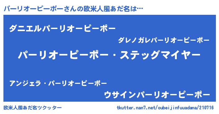| 男性向けラノベタイトル風あだ名 | 『うちのパーリオーピーポーが世界を掌握している!』 |