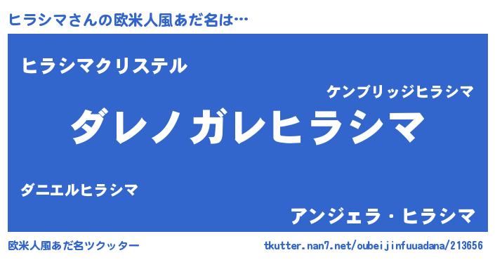 | 意味不明あだ名 | 『住所不定無職ヒラシマ(4歳)』 |