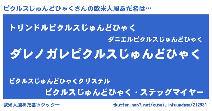 | 女子向けラノベタイトル風あだ名 | 『乙女ゲームの破滅フラグしかない悪役ピクルスじゅんどひゃくに転生してしまった…』 |