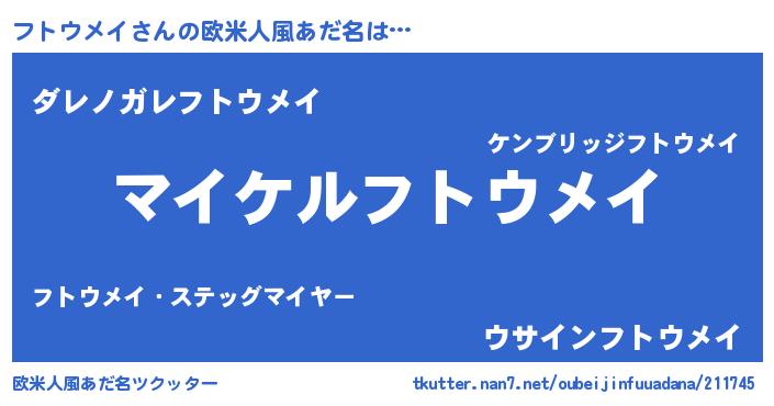 | 男性向けラノベタイトル風あだ名 | 『フトウメイの憂鬱』 |