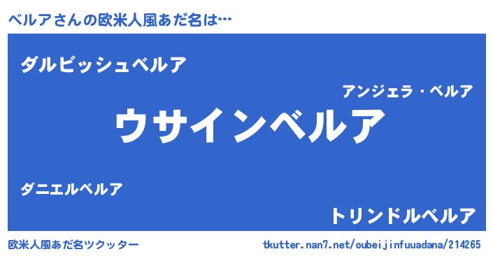 | 意味不明あだ名 | 『とにかく怪しいベルア』 |