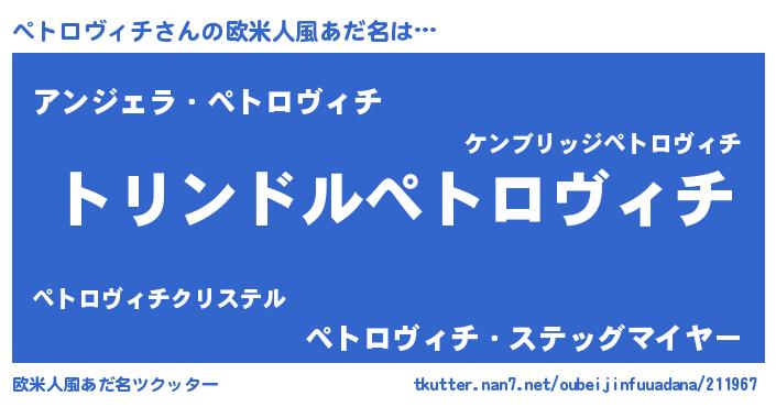 | 胡散臭い通販商品みたいなあだ名 | 『テレビで話題のアガリクス…その名も「ペトロヴィチ」』 |