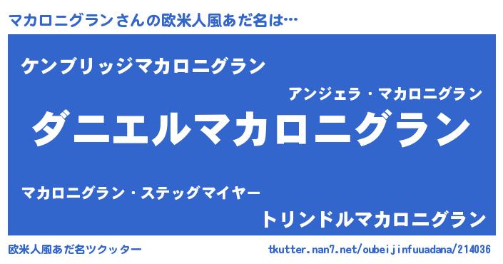 | ヘコむあだ名 | 『マカにー』『マカロニグラン(笑)』 |