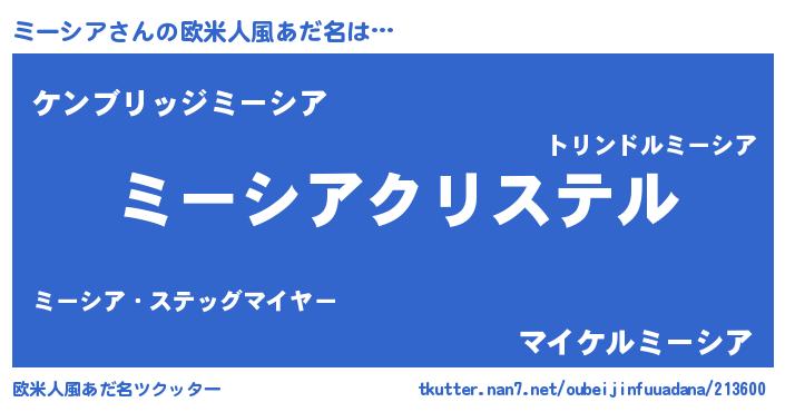 | 意味不明あだ名 | 『ミーシアフォーエバー』『自称ミーシア』 |