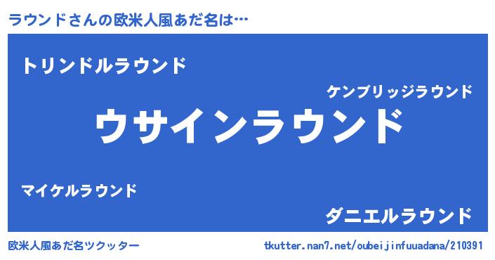| 男性向けラノベタイトル風あだ名 | 『ラウンドの嫁は女の子じゃないと思った?』 |
