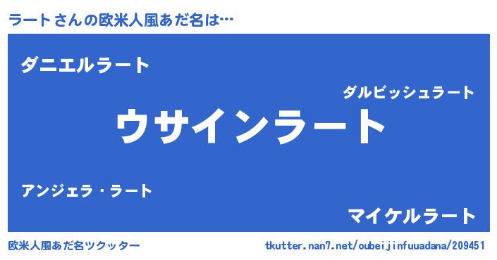 | 男性向けラノベタイトル風あだ名 | 『ラートの嫁は女の子じゃないと思った?』 |