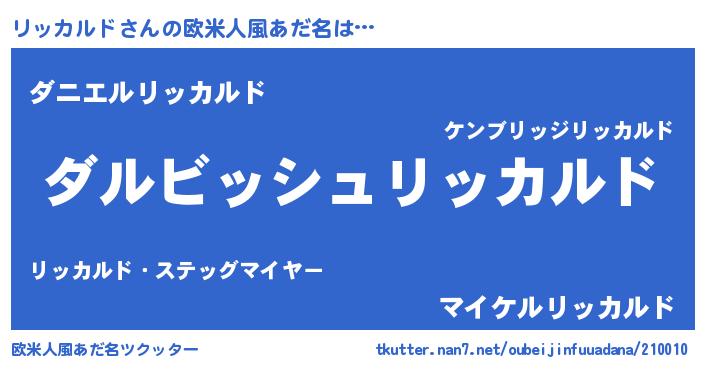 | 意味不明あだ名 | 『永久保存リッカルド』『自称リッカルド』 |