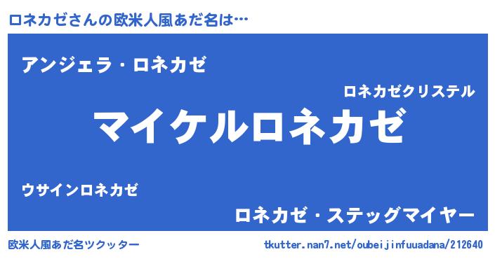 | 男性向けラノベタイトル風あだ名 | 『ロネカゼの憂鬱』 |