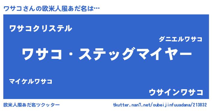 | 男性向けラノベタイトル風あだ名 | 『緋弾のワサコ』『ワサコの憂鬱』 |