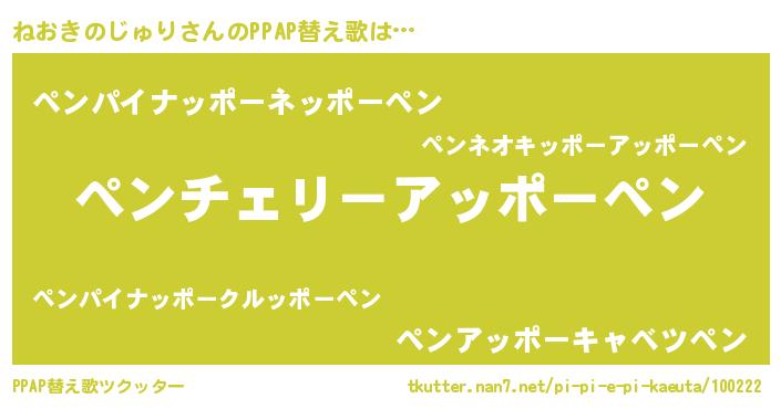 | 欧米人風あだ名 | 『マイケルねおきのじゅり』 |