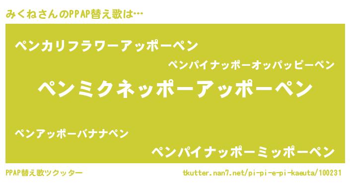 | 恥ずかしいあだ名 | 『ミクリンリン』『プリティーみくね』 |