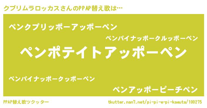 | 料理風あだ名 | 『クプリムラロッカスごはん』 |