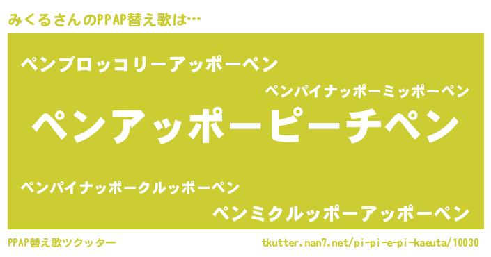 | ピコ太郎風あだ名 | 『ピミ次郎』『ミコ六郎』『ミク十郎』 |