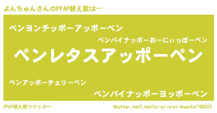 | 意味不明あだ名 | 『ペロリンよんちゅん』『自称よんちゅん』 |