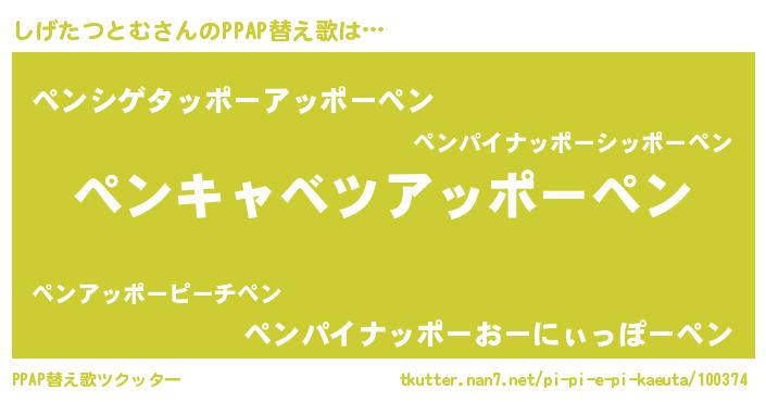 | ピコ太郎風あだ名 | 『シコ史郎』『シゲ四郎』『シシ太郎』 |