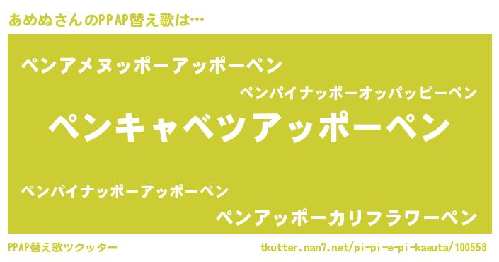 | 意味不明あだ名 | 『ペロリンあめぬ』『あめぬフォーエバー』 |