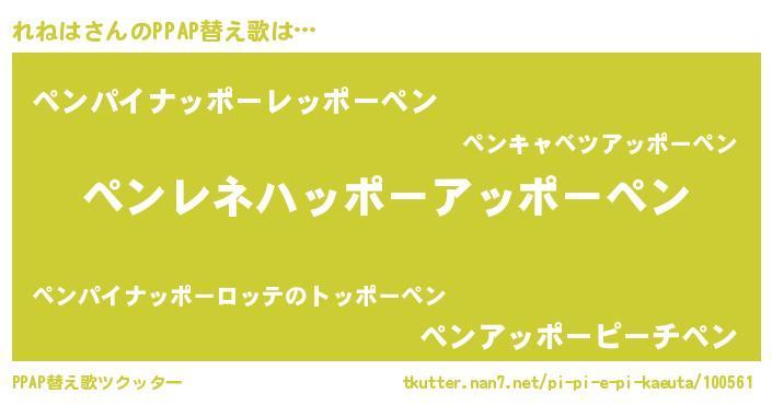 | 欧米人風あだ名 | 『ウサインれねは』『アンジェラ・れねは』 |