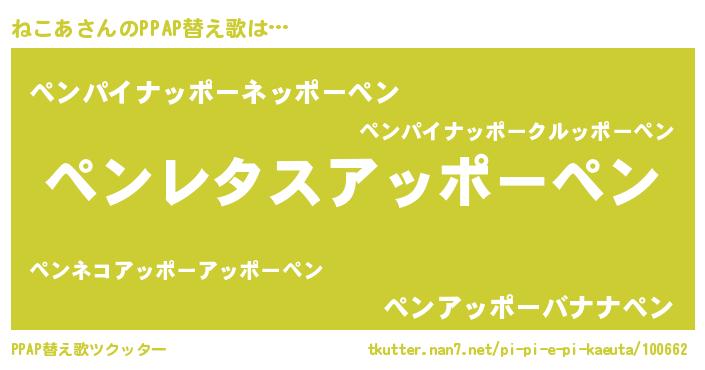 | ピコ太郎風あだ名 | 『ネコ史郎』『ピコネ郎』『ピネ八郎』 |