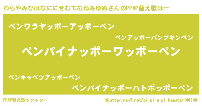 | 意味不明あだ名 | 『住所不定無職わらやみひはなににせむてむねみゆぬ(53歳)』 |