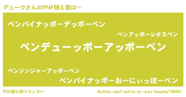 | 胡散臭い通販商品みたいなあだ名 | 『信頼と実績のサプリメント…その名も「デューク」』 |