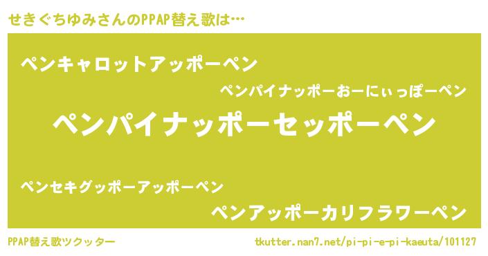 | 肩書あだ名 | 『せきぐちゆみ船長』『せきぐちゆみ大将』 |