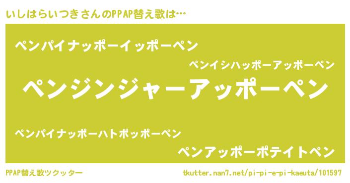 | ヘコむあだ名 | 『いしもー』『いしはらいつき(小並感)』 |