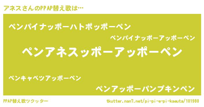 | ピコ太郎風あだ名 | 『アネ十郎』『アア太郎』『ピア太郎』 |