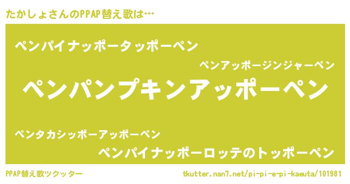 | ピコ太郎風あだ名 | 『タコ一郎』『ピコタ郎』『タタ太郎』 |