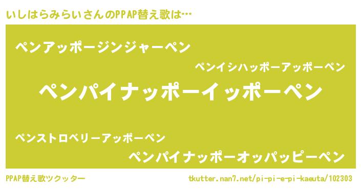 | ヘコむあだ名 | 『いしはらみらい(笑)』『豆乳』 |