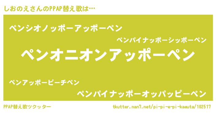 | 意味不明あだ名 | 『ペロリンしおのえ』『永久保存しおのえ』 |