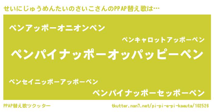 | 欧米人風あだ名 | 『ダレノガレせいにじゅうめんたいのさいこ』 |