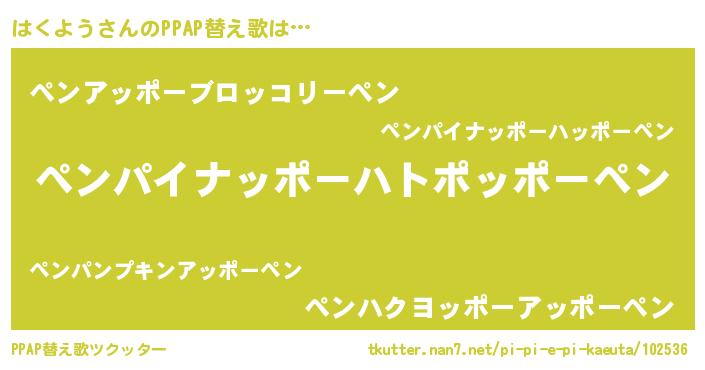 | ピコ太郎風あだ名 | 『ハハ太郎』『ピハ十郎』『ハク一郎』 |
