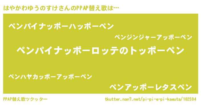 | 男性向けラノベタイトル風あだ名 | 『おまえをオタクにしてやるから、俺をはやかわゆうのすけにしてくれ! 』 |